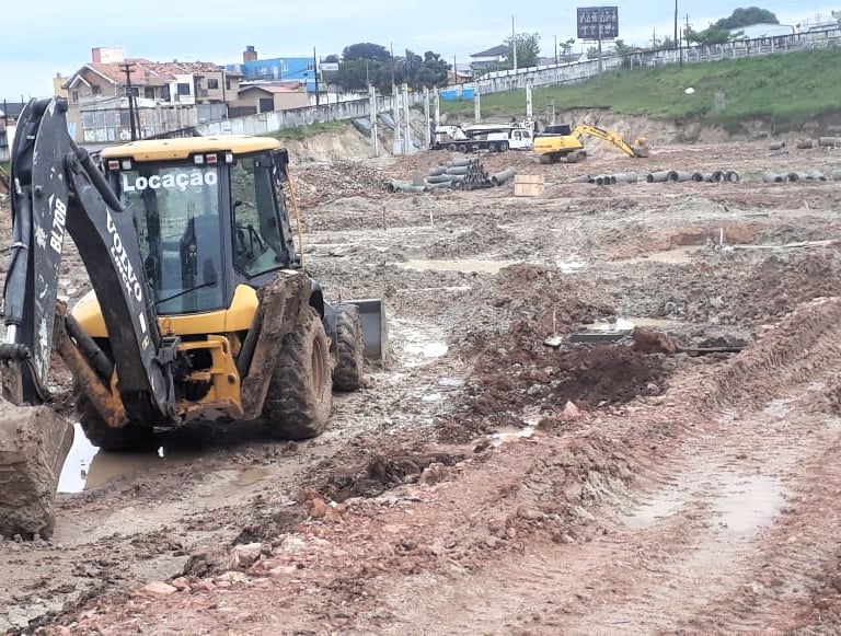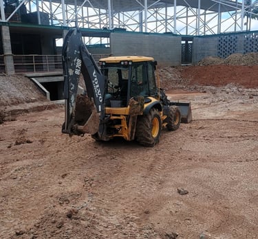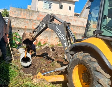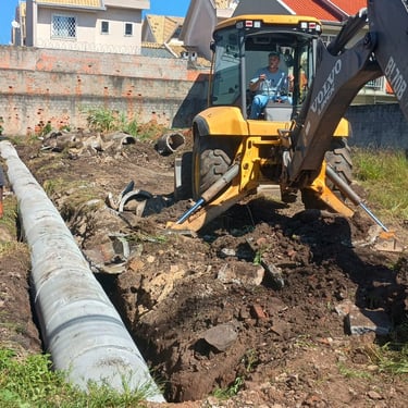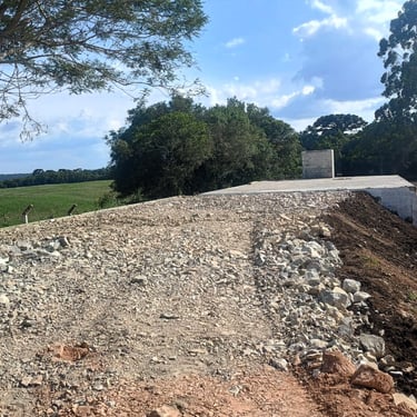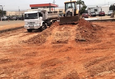 Nivelamento e preparação do solo para construção, garantindo uma base firme e segura.